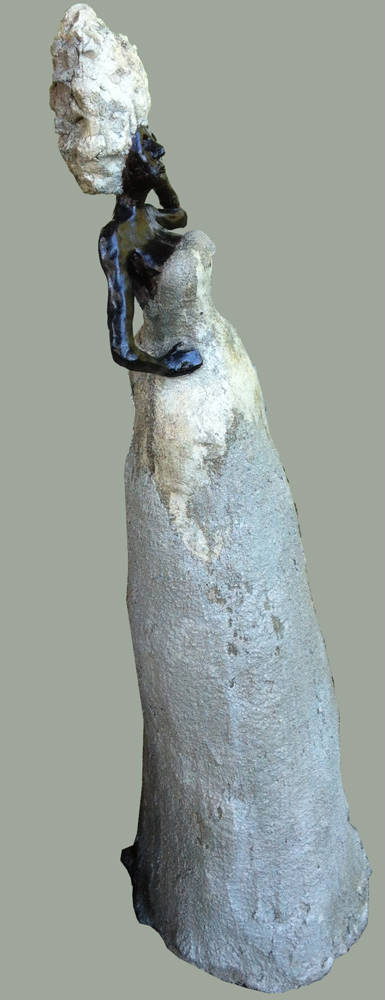 "Peinzen" keramiek en cement 2016 "Vrouwtje trektocht" keramiek en cement 2018